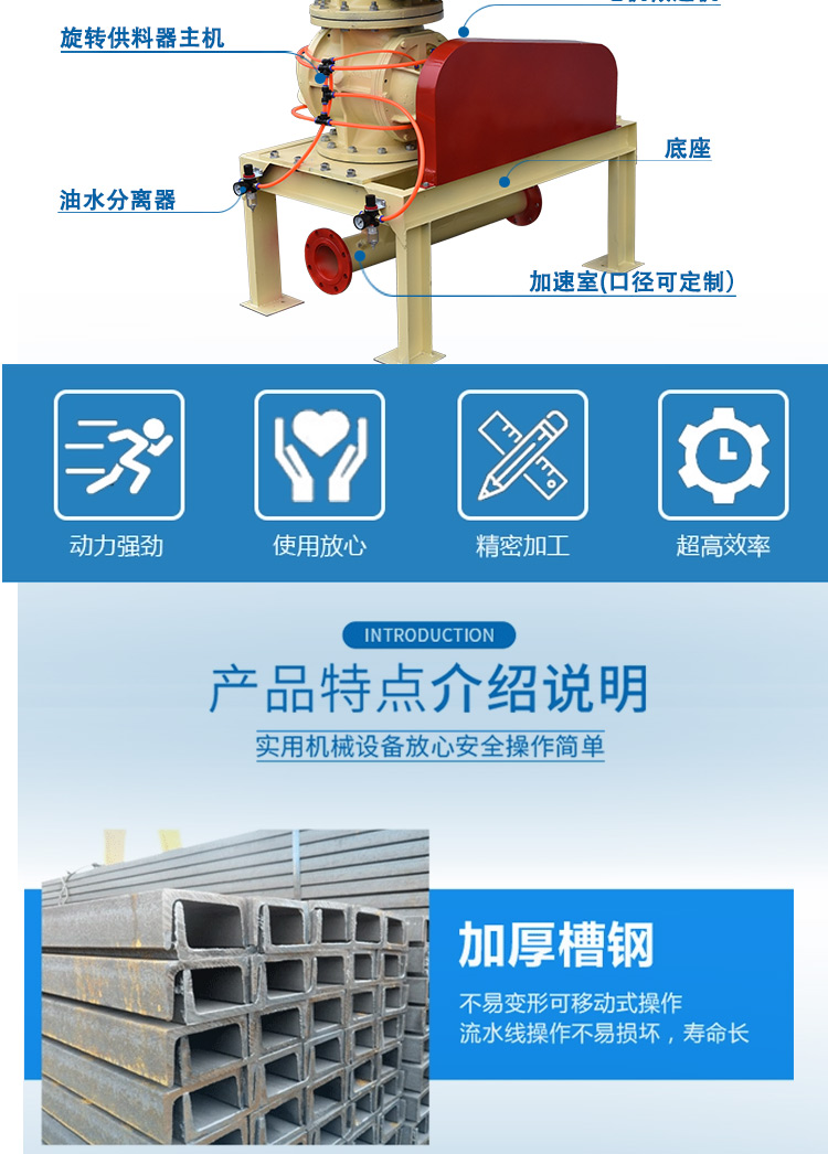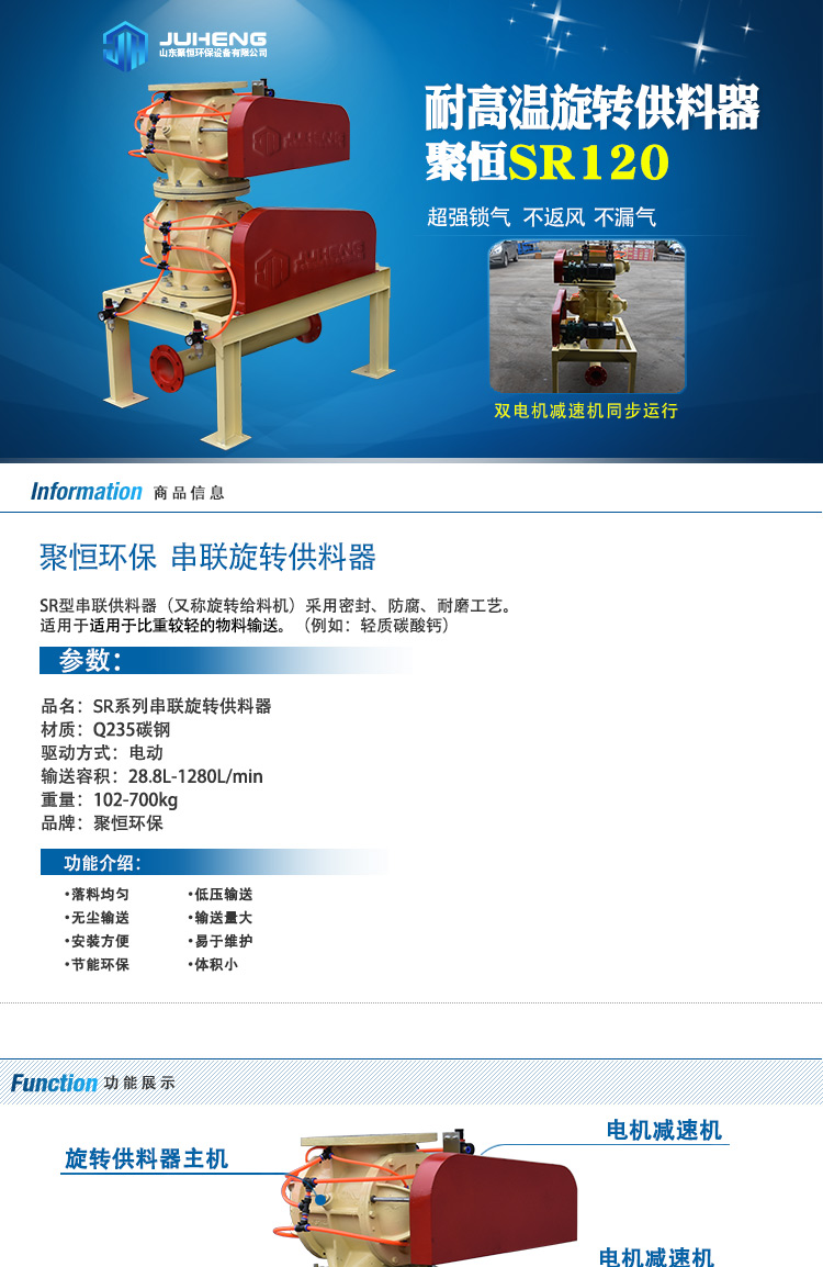雙極串聯(lián)型旋轉(zhuǎn)供料器:鎖氣能力更好,多適用于煤粉、脫硝粉等輸送。不僅如此聚恒串聯(lián)型旋轉(zhuǎn)供料器還可以根據(jù)現(xiàn)場實際需求,單獨設計從而完成安裝需求,系統(tǒng)成體運行平穩(wěn),不卡料或漏料,滿足工工況要求,輸送能力滿足需求的同時還安全可靠。